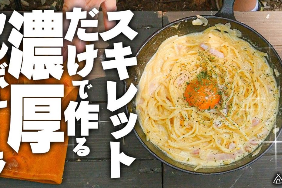 【キャンプ飯】カルボナーラの簡単レシピ【牛乳・生クリーム不要】 / Camp Skillet Recipe Pasta Carbonara