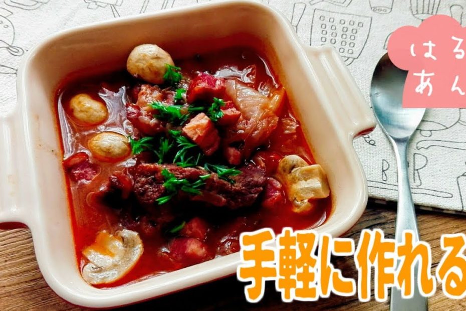 牛肉の赤ワイン煮込み【簡単レシピ】フライパンで焼いて煮込むだけ!家にある調味料で♪Boiled red wine beef