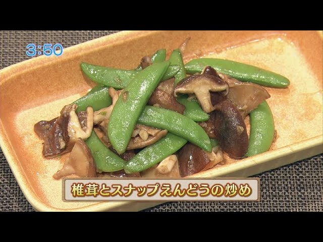 うんまかレシピ「椎茸とスナップえんどうの炒め」