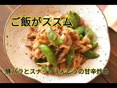 【レシピ・主菜・おつまみ】フライパンでパパッと炒めて簡単!豚バラとスナップえんどうの甘辛炒め