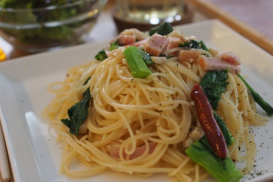 【レシピ】菜の花とベーコンのペペロンチーノ。簡単で丁寧な作り方。