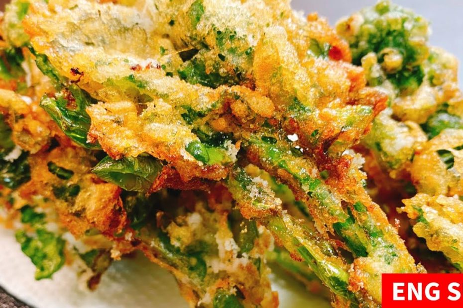 正直、天ぷらより旨い!一度食べてみて下さい。絶対ハマります。サックサク♪『菜の花のやみつき唐揚げ』Rape flower Karaage 低糖質 モッパン 먹방 일본 요리 튀김