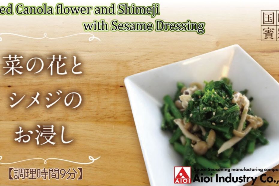 【簡単本格レシピ】<調理時間9分> 菜の花とシメジのお浸し Boiled Canola flower and Shimeji with Sesame Dressing【料亭ドレッシング(胡麻)】